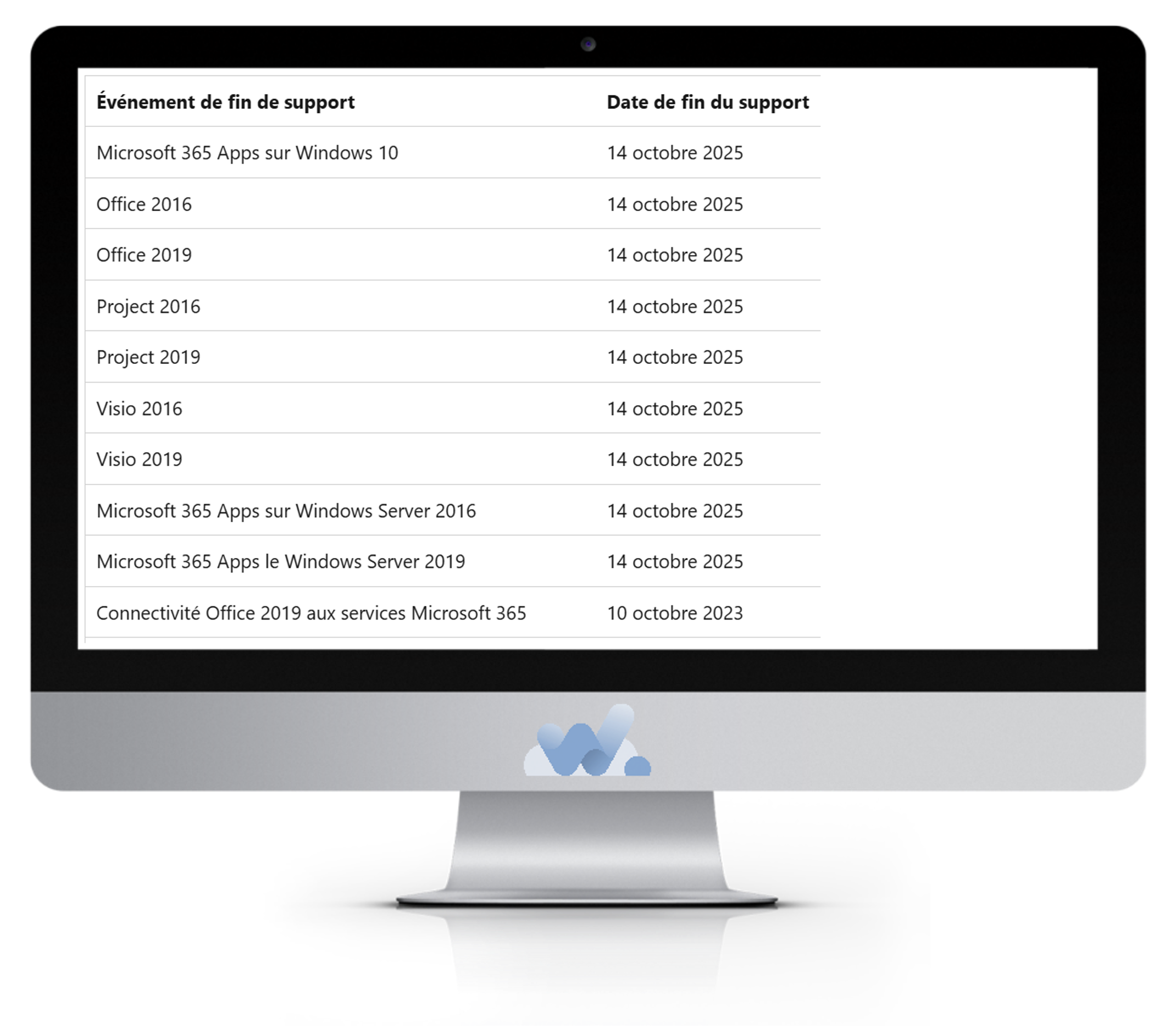 Avertissement concernant la fin du support pour Office 2016 et 2019